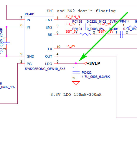 Postado 22 de Julho de 2015 10 anos O problema pode estar na linha +3VLP. Localize o capacitor PC422. Veja que ele tem um lado ligado no pino 5 do PU401 e o outro lado ligado ao terra. Com a placa desligada, sem carregador, injete 3V nesse ponto (veja na figura abaixo). Veja se o SIO esquenta e veja também o consumo na fonte.