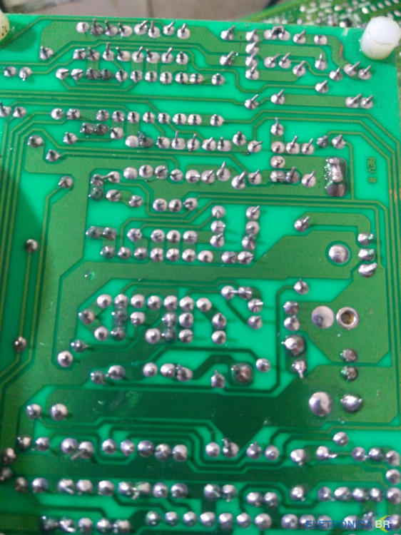 Buenas, sei que existem outros tipos, mas vou falar só sobre os que já usei. Existe o verniz em spray Implastec, especifico para PCB, nas cores verde e incolor. Ele é ótimo, mas requer um pouco de prática para conseguir aplicar uma camada uniforme e com bom aspecto (especialmente o verde). Parei de usar porque ele anda muito caro ultimamente.. no ML sai 39 pratas, mas nas lojas por aqui custa umas 60.. Tem este que vem em garrafinhas, e é bem mais barato. Não me adaptei com esse... ele é muito diluído, exige mais de uma demão para dar um bom acabamento, e a secagem é bem lenta. Os que tenho usado atualmente, compro em lojas de insumos para salão de beleza: Esse da esquerda é base incolor. Custa uns 25 pilas o frasco de 160ml, mas rende bastante. Dá o mesmo aspecto que o verniz que costuma vir de fábrica em placas envernizadas. Particularmente acho o acabamento melhor que aqueles amarelados, como o anterior. Ele é meio espesso, mas dá pra diluir acrescentando um pouco de óleo de banana (acetato de amila). Seca em alguns minutos, ou até mais rápido de aplicar ar quente. Essa é uma placa envernizada com a base incolor: Aquele à direita na foto é verniz de silicone. Geralmente ele é usado pra passar nas unhas, por cima da camada de esmalte. Ele dá um acabamento mais brilhante, e uma sensação 'emborrachada' ao toque. Uma placa pintada com ele fica assim: (aí tem umas pequenas bolhas porque ele não estava bem seco quando tirei a foto, mas elas somem com o tempo) Costumo usar esse verniz de silicone em placas que vem originalmente com esse tipo de acabamento, como algumas IHM Siemens e módulos automotivos Magnetti Marelli. Em algumas placas é usado o mesmo verniz que se usa em transformadores. Ele é o mais resistente de todos, mas não recomendo usar num reparo porque, se tiver que fazer manutenção na placa novamente, é extremamente difícil de remover. Sobre a condutividade, todos eles são ótimos isolantes quando estão secos. O verniz em si tem ótima rigidez dielétrica, mas o solvente usado nele não. No caso do Implastec e desses que costumo usar, é seguro energizar a placa cerca de 1 hora após aplicar o verniz. No caso do Redael e do de transformador, melhor esperar um pouco mais, talvez de um dia pro outro, antes de ligar.2 pontos