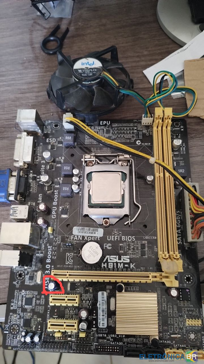 Peguei esta placa e ela não liga, só gira o cooler apenas uma vez e nada faz, já regravei a bios e nada. Fiz aquele esquema de jumpear direto pra ver se algum componente esquentava e esse capacitor estourou, fiz a troca. E continua.. com o 12v desconectado lá de cima do processador, continua o mesmo problema, so gira um pouco e para. 470uf 16v foi o capacitor que estourou. já troquei, e quando tento iniciar, o novo já trocado esquenta um pouco. Fica na mesma coisa. Alguém já pegou esse problema? obs: já testei com outras memórias, fonte.1 point