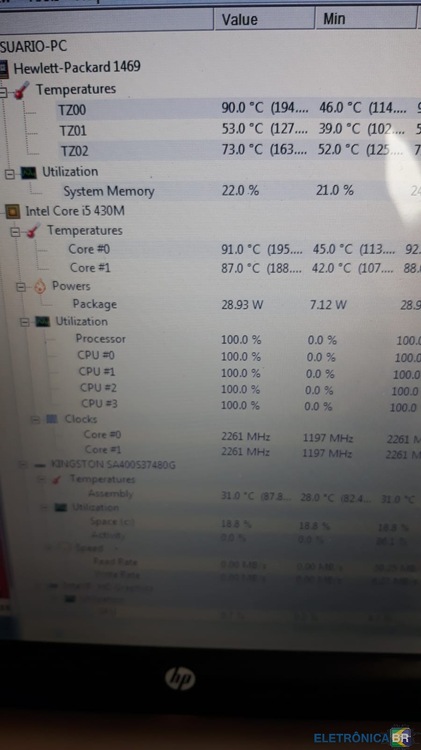 Recebi este note, ligando, porem nao apresenta imagem. Acredito que não chega nem carregar a bios, pois liga e fica travado o consumo. Cooler gira normalmente sem parar.