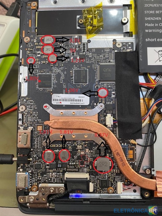 Peguei a placa mãe acima que estava ligando mas sem apresentar imagem, fiz alguns testes básicos de tensões, achei 3.3V, 5V, 1.4 no processador e mesmo assim não dava vídeo, pensei no típico defeito de bios, mas fiz o teste na memoria e não achei 1.8V, procurei esquema não achei, tinha uma um arquivo boardview desta placa aqui no fórum e abri o arquivo achei o POU2 onde o pino 3 e GND, porem o pino 4 também estava apresentando curto achei outro numa sucata fiz a troca e a placa voltou a apresentar vídeo. Obs.CI APW7120. Vou anexar fotos do componente na placa, para identificar.