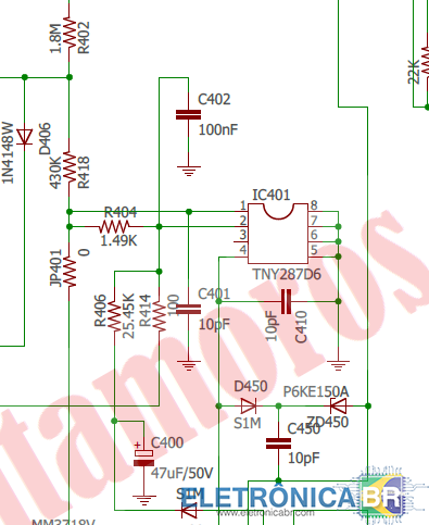 Olá @Nahuel Salazar . O ChatGPT está errado, o UCC25600 não é o componente correto. Se você observar a placa verá que o IC401 não possui o pino 3, e no UCC25600 o pino 3 tem a função de proteção contra sobre-corrente. O componente correto é o TNY287D. -