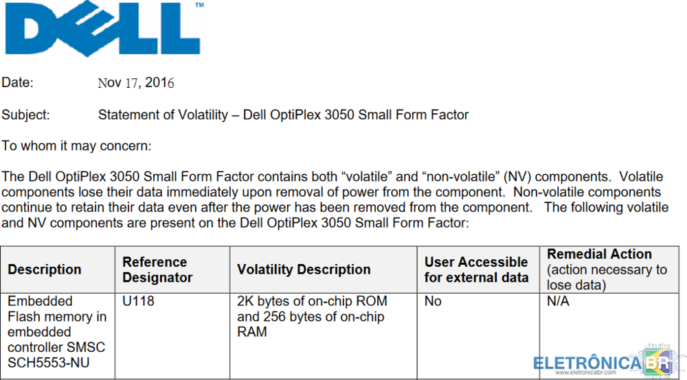 11. @Sergio Penido, Este SuperIO possui memória dos 2 tipos: "2K bytes of on-chip ROM and 256 bytes of on-chip RAM". Segue abaixo detalhes do Optiplex 3050 qe também utiliza este Super IO. Portanto não adianta instalar um chip novo virgem. Ele deve vir gravado. Minha sugestão: Tentar arrumar um chip usado de placa da Dell que já vem gravado. Mais garantido.