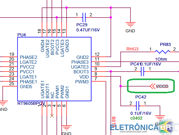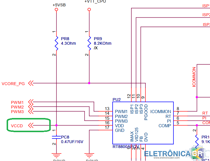 4. Removi o PU2 e continua sem a tensão de VCCD. Removi o PU4 e a tensão VCCD apareceu. 5V. Medido resistência entre pino 8 e GND do PU4 e encontrado 2 Ohms. Acho que encontrei o problema amigos. Assim que eu fizer a troca do PU4 posto aqui o resultado. Obrigado por enquanto....