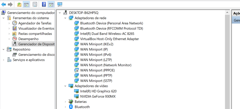 Aparece assim, tenta atualizar o driver, mas aparece dispositivo nao encontrado com o drive da nvidia baixado no site do fabricante. Já tentei atualizar pelo windows update tmb. O dxdiag na aba exibir mostra> "Há um problema com o dispositivo NVIDIA GeForce 930M. Para obter mais informações, pesquise por 'código de erro de driver de dispositivo gráfico 43' " Mais tarde vou desmontar pra ver o part number. Acho que o device id é o part number @tecgess -