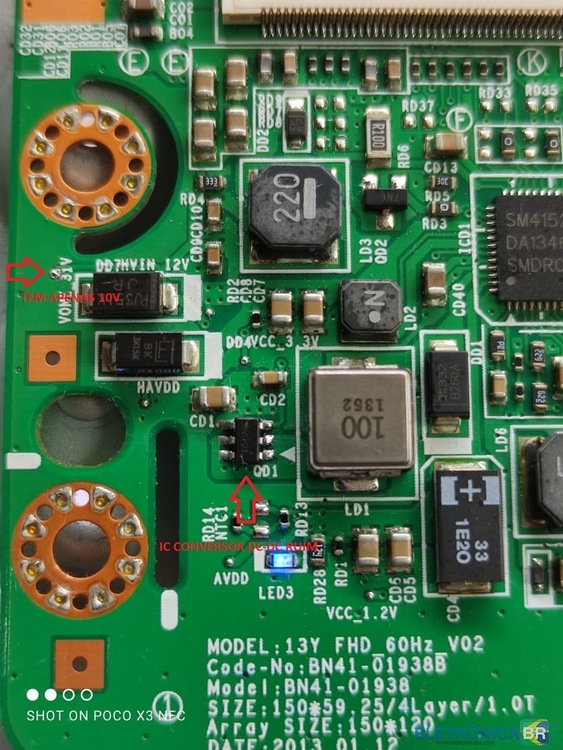 Segue a dica como ja peguei 2 com esse defeito pode ser util pra mais alguem, como esta no titulo tela com listras parecendo defeito na propria tela verificando o o aparelho usa placa t-con que faltava a tensão avvd em ambos os casos que peguei era dois componentes na t-con o diodo DT805 e o capacitor de 10mf ceramico CT915 segue foto com os componentes marcados em ver vermelho. -