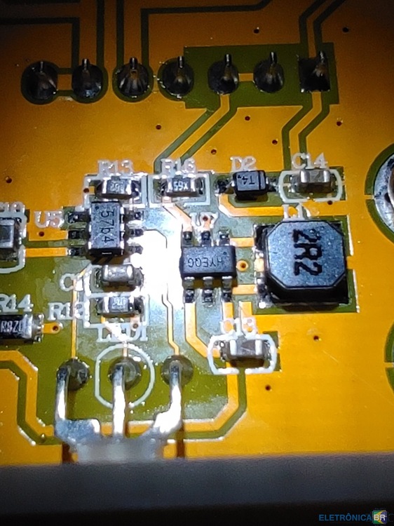 O meu LCR TC1 utiliza a mesma placa c5.1.3 que o seu. A área defeituosa do seu medidor é um step-up, responsável por gerar 31 volts para testar diodos zener. Talvez o capacitor c14 tenha entrado em curto e por isso queimou o diodo. Talvez volte a funcionar se substituir o diodo D2 e o capacitor c14. O capacitor c14 é um T4, ou seja, é um 1N4148WS. O capacitor c14 é um capacitor SMD comum de cerâmica, deve ser de alguns picofarad, mas o importante é escolher um capacitor que suporte tensão maior que 31 volts, se não ele vai entrar em curto novamente. O circuito integrado step-up é um HYEQG, não encontrei o datasheet dele. Infelizmente ainda não há um datasheet da placa inteira para a nossa versão. O principio de funcionamento é o mesmo, apenas alguns componentes foram alterados.- 24 respostas