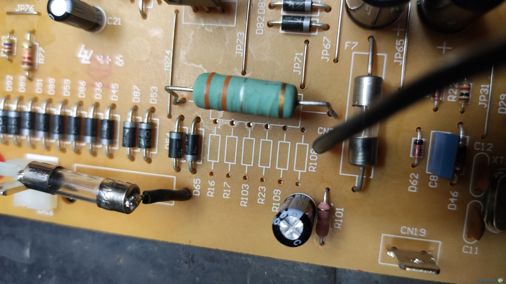 é meio complicado , porque a placa está dentro do monitor que eu estou usando. eu tenho o manual de serviço do monitor, já consertei, mas o que fez queimar um trasistor de 12v foi esse diodo em curto.. quando eu coloquei o transistor na principal do monitor/tv - o mesmo não funcionou. como eu já havia testado tudo e sabia que só era aquilo, eu abri o LCD e fui na placa do LCD pra ver se ali tinha algum curto impedindo a placa controladora do monitor de funcionar e achei esse diodo em série na entrada de 12v depois de um fusivel smd totalmente em curto.