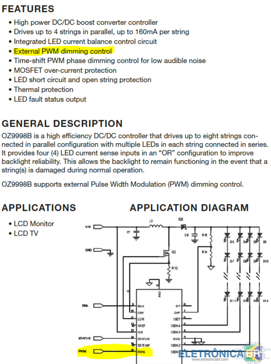 Boas pessoal, acho que já tentei de tudo, mas também não sei o que fazer mais, estou com dificuldade em perceber se quem manda os leds acenderem é a placa controladora a partir do IC TSUMU58PHJLF3 (não tenho datasheet se alguem conseguir ou tiver deste ic agradeço) ou se é o IC 0Z9998. Há uma coisa que sei que é o MOSFET AP9997GH não está ativado dai a tensão não passar dos 30V e o gate permanecer nos 0V neste estado o mosfet não conduz e os leds ficam desligados julgo eu corrijam se estiver enganado. O gate deste mosfet está ligado ao PIN 7 do IC 0Z9998BGN,