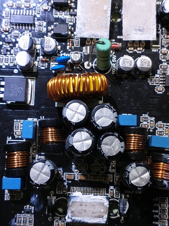 Substituí o IR2113, o SG3524, dois diodos 1N4148 e os dois GB4062D. O módulo ligou, tudo funcionando, bluetooth e saída de áudio.