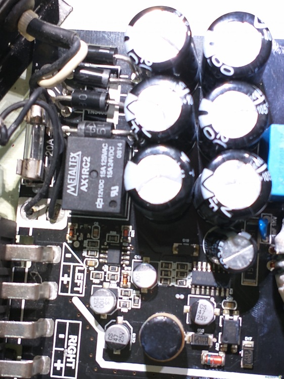Porém, ao ligar, ouço um ruído vindo da placa parecendo o som de "asas de mosquito batendo em alguma coisa" por 1 segundo ou menos e depois para, alguns segundos depois os auto falantes começam a dar uns estalos (com intervalo constante de alguns segundos) como se tivesse algum mal contato passando corrente, algo semelhante acontece quando faço o ajuste de som. Depois para e funciona normalmente, fino. Acho que vou deixar como está, estou testando ele com dois alto falantes pequenos de 4 ohms., vou ver quanto tempo funciona, rsss.