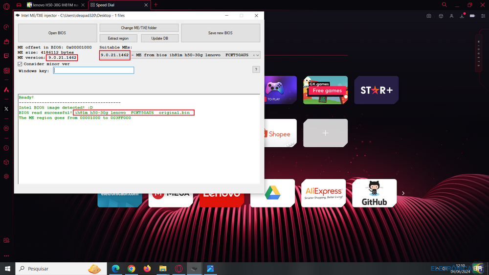 utilizei um hd com w10, de outra máquina, instalalei o flash exe da propria lenovo e fiz a atualizaçao da bios FCKT50AUS para FCKT69AUS mas nao houve mudança no comportamento.