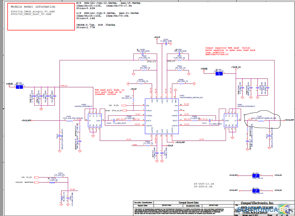 Apresenta tensão de 3.3v no super I/O, na bobina PL401 tem 5v no +5VALWP e quando eu aperto o botão power zera a tensão e a bobina fica aterrada. Desligando o adaptador e ligando novamente na tomada a tensão volta, mas é só apertar o power e cai de novo.