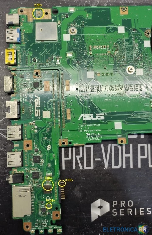 Olá a todos, estou tendo problemas com um notebook Asus z450l como descrito no título. Ele não acende nenhum LED e não nenhum sinal quando o botão de power é acionado, independente de estar ligado com o carregador ou na bateria. Encontrei o esquema elétrico dele aqui no fórum, mas não posso baixar ainda pois sou novato. Já realizei alguns testes, não encontrei nenhuma bobina/PL em curto e pelas medições que fiz a corrente esta chegando sem problemas no CI do charger, os 3.3v da BIOS também está chegando.