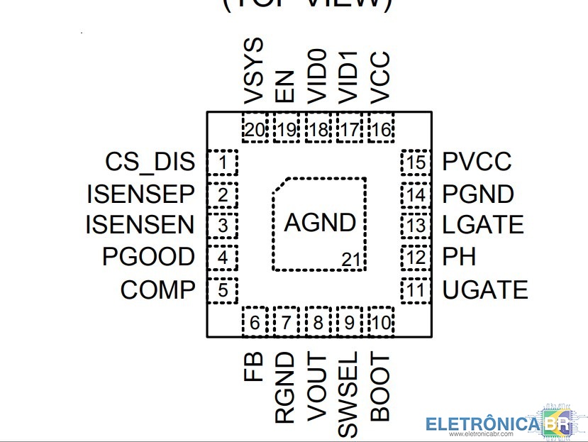 Tenho 19v chegando no pino 15 (PVCC), mas notei que não tenho a tensão de habilitação no pino 19. A trilha desse pino atravessa a placa, e depois deve seguir por alguma trilha interna, pois não encontrei um caminho para ela na superfície. -
