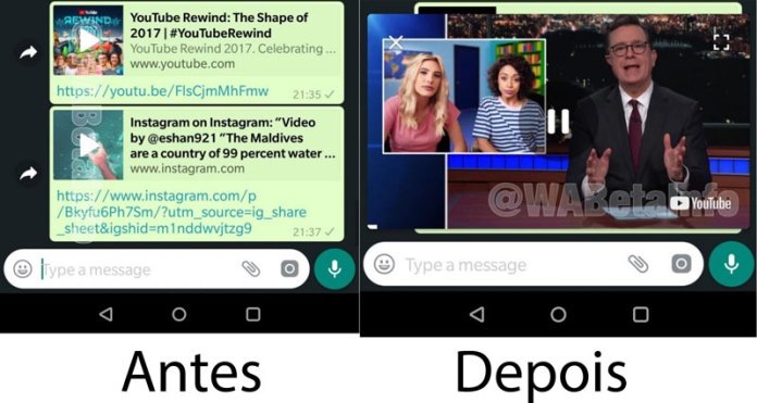 O WhatsApp tem mostrado que quer melhorar o seu serviço para utilizadores Android. Há uns dias falámos que a empresa está a trabalhar para trazer a chamada de vídeo em grupo para a aplicação e que a luta contra as fake news continuam uma prioridade. Infelizmente, nem tudo são boas notícias. Ontem referimos ainda que a aplicação trará publicidades em breve. O WhatsApp continua a ser um serviço grátis e sem nenhuma forma de lucro. De forma a justificar esta possível adição de publicidade a aplicação terá de melhorar ainda mais e parece que a empresa assim o fará. Os utilizadores Android receberão dentro de pouco tempo uma das características mais pedidas pelos utilizadores. Principalmente aqueles que gostam de partilhar conteúdo de outros serviços. WhatsApp para Android reproduzirá o vídeo dentro do chat em Pop-up Falo da visualização de vídeos na plataforma. Se alguém partilhar um vídeo do Youtube ou do Instagram para visualizares o conteúdo tens de clicar no link e abrir a aplicação em específico com o vídeo. Este é provavelmente uma das coisas que mais me irrita nas plataformas de chat. Seja WhatsApp, Facebook Messenger ou até Slack. Todos eles abrem uma versão muito má do Youtube que faz da visualização um pesadelo. Com a futura atualização do WhatsApp os utilizadores conseguirão ver o vídeo diretamente no chat com uma pequena janela. O vídeo fica em formato de pop-up e poderás aumentar para o ecrã inteiro ou ver o vídeo nessa pequena janela. Finalmente o WhatsApp permitirá tal funcionalidade. A aplicação até pode ser a mais utilizada para comunicação, contudo, há algumas coisas que precisa de melhorar. Ultimamente temos falado mais do WhatsApp porque finalmente a equipa de desenvolvimento acordou e começou a fazer um trabalho digno de ser partilhado. fonte: 4gnews.pt