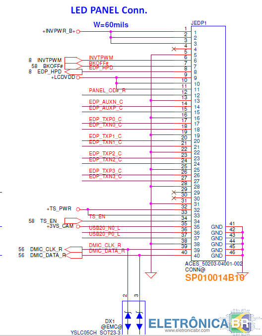5. notebook parou de gerar imagem somente na tela interna, apos abrir percebi que havia 4 parafusos solto na placa, 01 deles estava em cima do conector da tela, entre o pino 4 ate o 8 do conector JEDP1 - gera imagem no monitor externo, passa 19v para a tela e 3.3v tambem, ja testei com outra tela, e o problema persiste, os outros parafusos estavam em locais sem contato com a placa, grudado em adesivo então o foco maior foi nessa parte.