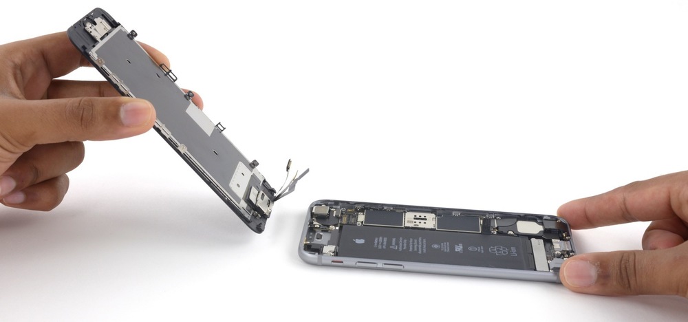 Descarregue a bateria até que atinja pelo menos 25% de carga, para evitar risco de fogo ou explosão em uma perfuração acidental. Passo 1: Desligue o aparelho e remova os 2 parafusos Pentalobe P2 3.4 mm localizados na borda inferior. Passo 2: Caso a tela esteja trincada ou estilhaçada, cubra toda a área com fita adesiva larga para evitar o colapso do vidro. Utilize óculos de proteção! Passo 3: Utilize uma fita adesiva forte para puxar a tela caso esteja protegida com a outra fita (conforme foto abaixo). Caso contrário, utilizar ventosa. Passo 4: Inserir uma espátula entre a tela e o chassi, e girar para aumentar a abertura. Passo 5: Deslize a espátula pela lateral esquerda para separar o adesivo e destravar os clips. Faça o mesmo na borda inferior e na lateral direita. Passo 6: Puxe cuidadosamente a tela com a ventosa (ou a fita) até um ângulo máximo de 90°, para não danificar os flex que se encontram conectados. Passo 7: Utilize uma liga de borracha para prender a tela a um apoio (a caixa do iPhone, por exemplo) enquanto se procede os passos seguintes. Passo 8: Remova os 2 parafusos localizados no suporte do conector da bateria (atenção ao remontar pois eles tem tamanhos diferentes). Retire o suporte. Passo 9: Desconecte o conector da bateria com o auxílio de um punção ou espátula. Passo 10: Remova os 4 parafusos do suporte dos flex da tela. Atenção na remontagem: são 3 parafusos iguais e 1 diferente (foto abaixo). Passo 11: Desconecte os 3 flex com auxílio de uma espátula ou a própria unha (limpa!). Passo 12: Remova a tela. Passo 13: Remova os três parafusos do suporte do botão Home e retire o suporte. Passo 14: Desconecte o flex e empurre gentilmente o botão Home para cima para separá-lo do painel frontal. Passo 15: Com auxílio de um punção ou cartão fino desprenda o flex do painel. Retire o botão Home. Passo 16: Remova os 3 parafusos do suporte do alto-falante e retire cuidadosamente o suporte para não danificar a junta. Atenção na remontagem: são 2 parafusos iguais e 1 diferente. Passo 17: Retire a câmera frontal do alojamento para ter acesso ao alto-falante auricular. Remova o alto-falante. Passo 18: Segurando a câmera frontal, retire o sensor de luz e desdobre o flex para ter acesso ao microfone. Passo 19: Utilize uma espátula ou cartão para descolar o flex do painel frontal. Retire todo o conjunto. Passo 20: Remova os 7 parafusos indicados abaixo. Atenção na remontagem: são 6 iguais e 1 diferente, conforme fotos. Passo 21: Aqueça a fita da blindagem EMI com um soprador térmico ou secador de cabelo para enfraquecer o adesivo e retire-a com uma espátula. Passo 22: Use uma pinça para remover o pedaço de fita da blindagem EMI, próximo ao compartimento da câmera frontal. Passo 23: Remova a blindagem EMI. Passo 24: Concluído! Fonte: https://www.ifixit.com-