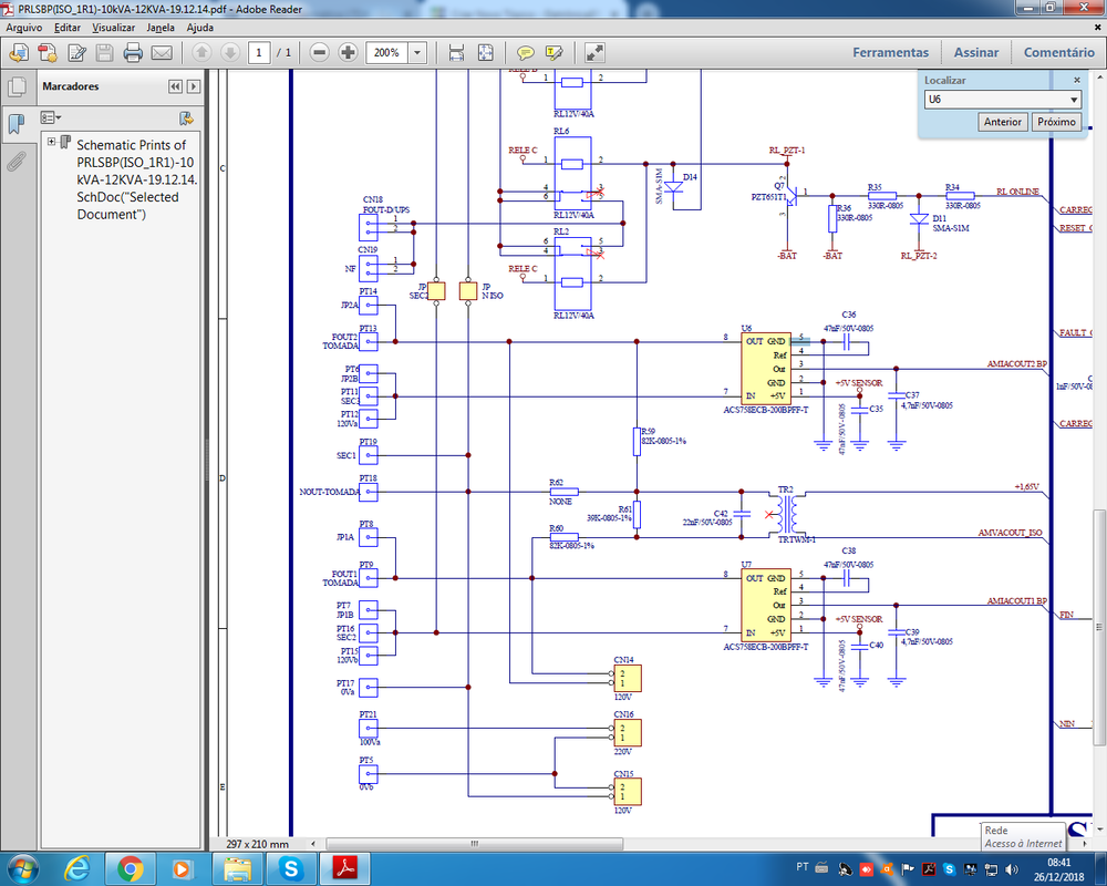 Bom dia, Pessoal Estou com esse nobreak da nhs 10 KVA, não consegui resolver, mesmo com o esquema dele não consigo identificar o que esta em curto, o problema ocorre quando tento ligar ele, ele acaba queimando os diodos d7,d8,d9,d10 e também o resistor R4 da placa PRLSBP, esse nobreak é composto por duas placas, minha duvida é com relação a um componente especifico que não consegui entender o funcionamento, e aparentemente esta em curto, o componente seria o U6 e U7, eu olhei o datasheet dele mas não consegui entender qual a função dele, minha duvida é ele pode apresentar curto entre o terminal 7 e 8 desse componente segundo o esquema ? no esquema consta com "IN" e "OUT" . Segue em anexo parte do esquema das duas placas, na outra placa que seria a EXOL também tem o mesmo componente e também da mesma forma apresenta curto nesses dois terminais. Link esquema eletrico: -