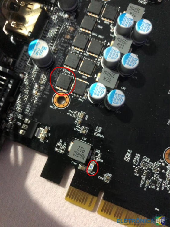 Boa tarde pessoal, sou novo na area de reparo de vgas e placa mãe, estou aprendendo ainda sobre os componentes e etc, e gostaria de uma ajuda pra tentar identificar o problema dela. Tenho aqui uma placa gtx 1050 ti 4gb da gigabyte modelo GV-N105TOC-4GD que não dá video, não esquenta a gpu e não é reconhecida , já testei ela em duas placas mãe diferentes, ambas funcionando.. Fiz alguns testes na alimentação pci-e e aparentemente não tem curto ali, baseado nos dados do datasheet, na escala de diodo vi que existe um curto nos indutores onde está circulado na imagem.. (obs: peguei a imagem de um topico do forum, de um rapaz que tinha um problema parecido mas nao conseguiu resolver) Alguem tem ideia do que pode ser ? obrigado