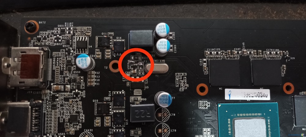 Ola Pessoal! Estou com essa GTX-1650 (Asus GTX1650) da Asus que não está dando video. Ao fazer a análise, notei a falta de um componente (PMC3) na parte de trás dela. Ao lado desse componente, estou na duvida se deveria ter algum outro componente tb (PML1). Procurei por fotos, esquema mas não encontrei nada dessa Asus GTX1650. Alguém poderia fazer a gentileza de enviar alguma foto ou informações? A seguir imagens da placa: