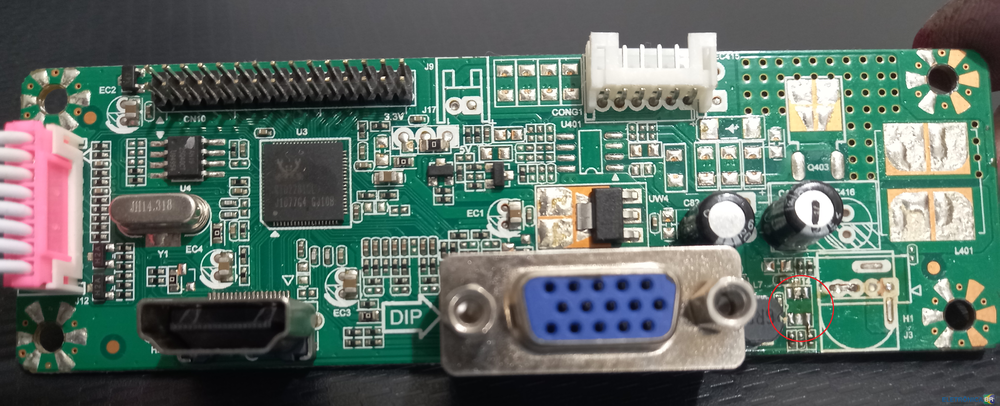Boa tarde amigos! Estou com esse monitor em questão que ao pulsar o botão de power o display fica piscando e não dá sinal de vídeo, analisando setor por setor percebi que a linha de 12v fica oscilando entre 8v e 12v, como se estivesse em curto, encontrei o componente U10 com uma marca em cima e que estou desconfiado que seja o causador do problema, mas não consigo ler a serigrafia do mesmo para analisar o datasheet, alguém teria uma placa dessa para me dizer qual componente é ele? Segue uma foto do mesmo...