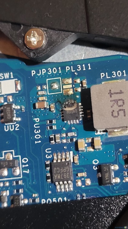 Olá pessoal, vi que há vários tópicos semelhantes ao problema que eu peguei para resolver que aconteceu com um Dell inspiron 3511 mas me recomendaram criar um novo tópico falando sobre o meu problema. Já adianto que não sou técnico em eletrônica, sou técnico em informática e tenho alguma noção básica sobre eletrônica e equipamentos como Fonte de Bancada, Microscópio Digital e estação de retrabalho e solda. Tenho esses equipamentos pois costumo pegar algumas coisas simples de resolver como trocar capacitores de placas fonte de monitores e TV's de LCD / Plasma. Não é um serviço que pego a todo momento para fazer mas hoje em dia qualquer um com um pouco de esforço e dedicação consegue pesquisar e encontrar soluções na internet com ajuda de terceiros. Bom acho que já me apresentei agora vamos aos fatos de como o cliente danificou seu notebook. Como o problema foi criado pelo cliente? R: O Cliente me relatou que após colar a dobradiça da tela com Super Bonder o notebook não funcionou mais. Perguntei se ele desplugou o cabo da bateria da placa mãe antes de fazer qualquer procedimento após remover a tampa do fundo e ele relatou que removeu diretamente o LVDS "cabinho do LCD nas palavras dele" sem ter desconectado a bateria e fez o "reparo com super bonder" no local da carcaça da tampa onde a dobradiça é parafusada. E disse que após remontar o notebook ele ligou mas já não apresentava imagem na tela e após um curto período de tempo ele desligou e não ligou mais, parou de reconhecer o carregador (Sem Led de indicação de carga) e trouxe o equipamento direto pra eu dar uma olhada para ele. Após uma inspeção visual encontrei o CI SMD PU301 com um pequeno furo no meio. Fiz o teste no fusível de proteção F1 do LVDS e ele não está danificado, fiz a substituição do PU301 (Sy8386brhc) Não ficou muito bonito pois a malha dessoldadora era um pouco grossa para esse pequeno reparo e deu uma lixada no verniz da placa mas os pads ficaram limpinhos, mas confesso que estou com receio de ligar o cabo da fonte na placa mãe para medir as tensões sem saber se pode ter algo a mais em curto, por onde eu devo começar as fazer medições para ter certeza de que não há nada mais danificado antes de energizar a placa? Link do Boardview da placa: Boardview GDM50-LA-L241P- REV 1.0 (A00)