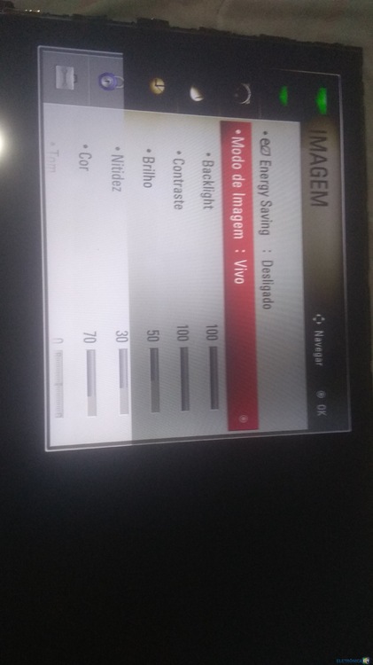 A imagem no inicio estava escura . Troquei todas as barras por novas . Ao ligar a tv sem usar antena externa , o quadro da imagem estava com mais menos uns 70% de abertura nas laterais e apresentava ruidos nas escritas e nos objetos
