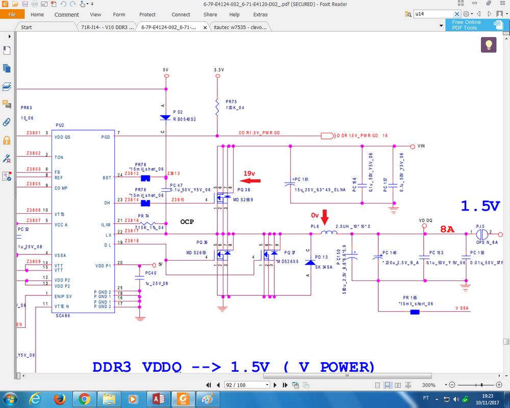 Boa noite amigos. Estou com essa placa na bancada, mais não estou conseguindo identificar o defeito. Tensões que encontrei na placa. 19v / 3,3v / 5v PL8 = 5v PL9 = 3,3v **Processador e Chipset não aquece, nem minimamente. Não encontrei as tensões nas bobinas do vcore, mais não sei como proceder, minha cabeça já ferveu e não consigo sair do lugar. Link do esquema: Enviei algumas imagens das tensões encontradas nas fontes secundárias. Essa placa tem o P2808, porém fiz as medições e as tensões parecem estar corretas. Com a placa ligada pino1 = 19v pino2 = 19v pino3 = 19v pino4 = 0v pino5 = 0v pino6 = 3,3v pino7 = 3,3v pino8 = 19v em standby há uma alteração nos pinos 6 e 7 que são 0v. Se alguem puder me ajudar, ficarei grato, pois não tinha pego esse defeito ainda. Abraços.