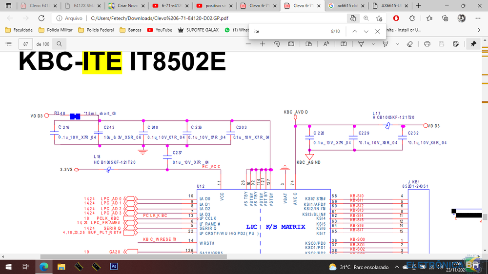 O primeiro defeito foi aquecimento e cooler parou, troquei o cooler, depois de muita insistência em ligar e desligar com comandos e atalhos para desbloquear e ou resetar o bios. Ele parou de ligar a placa, ou seja, sem leds acesos. Conecto a fonte na placa e o led da fonte se apaga. A fonte está 100% com 19v. Testei o jack e o aterramento de todos os pontos, está ok. Fiz alguns testes de continuidade em alguns componentes, e alguns apresentaram continuidade, mas, estou sem as referências e, por isso, preciso do esquema elétrico e ou boarview dessa placa se possível! Testes visuais e com multímetro somente. Suspeito que seja na parte de alimentação.- 3 respostas