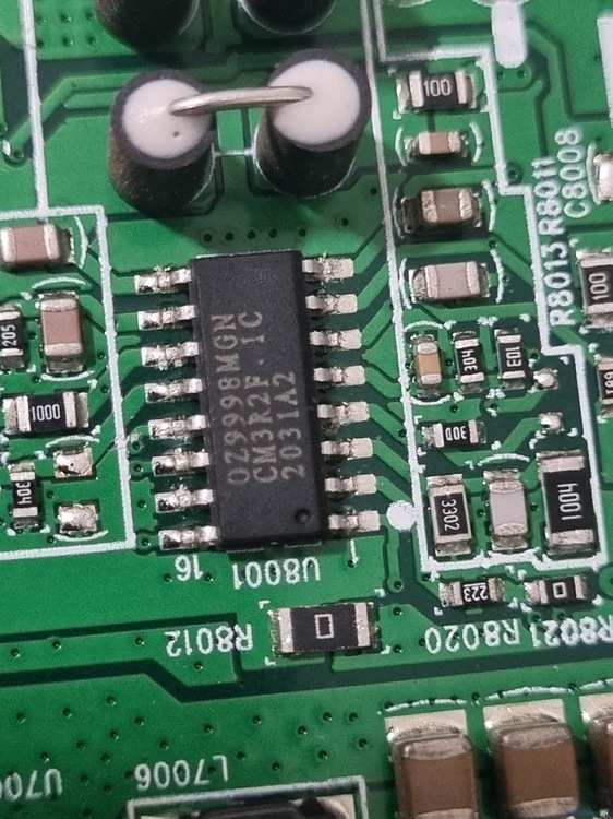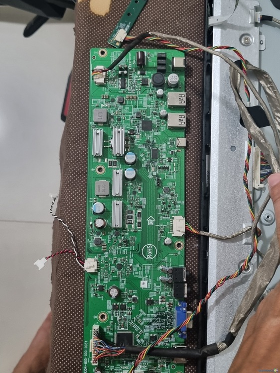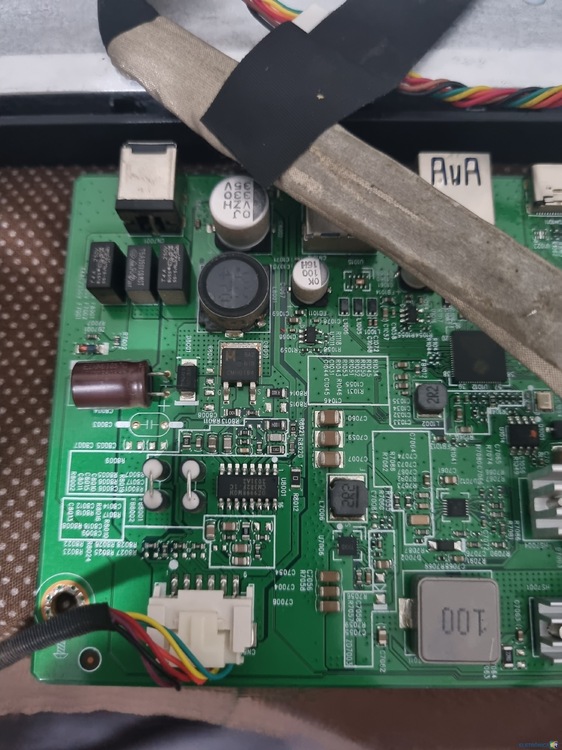 Olá, estou com esse monitor com problema no backlight, consigo ver a imagem se colocar uma lanterna na frente dele. Verifique que o CI U8001 modelo 0Z9998MGN não esta chaveando o mosfet.