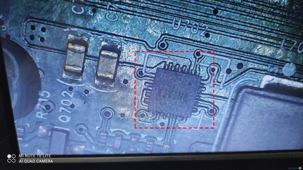 Continuando a medir e procurar algum componente danificado cheguei ao IC U702 perto processador, Porém com uma referencia estranha ainda não consegui identificar corretamente qual é esse IC, no caso não sei dizer se é 8NTAZA ou se é BNTAZA, Estou deixando uma foto da placa para os amigos verem e se possivel me ajudar nesse caso desde já agradeço pela força.