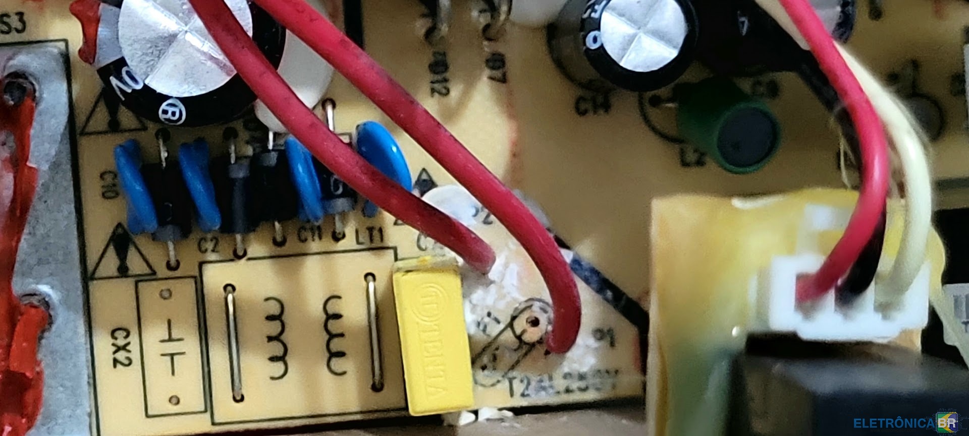 Esta tv chegou na assistência com imagem escura. Foi substituído regua de led's e aparelho funcionou normalmente, porém voltou a apresentar problemas devido a regua nova vir com terminais em curto e eu nao vi e nem imaginei que pudesse acontecer isto "fazer o que né" depois e exatos 3 meses não da pra trocar mais. Essa falha no componente apesar de ter funcionado, pois os terminais em curto foram colocados propositadamente por alguém que queria que a tv funcionasse mesmo com defeito no circuito do inverter, pois foi feita uma união em todos os terminais que polarisavam os leds do barramento. Como não gosto de ver esse tipo de coisa decidi resolver da maneira mais adequada, mas pra minha surpresa não é fácil achar esse inverter então resolvi adaptar esse da LG 42lv3500. Inverter original. Inveter lg 42lv3500 Mudança necessária para fazer a adaptação: Usei o original apenas para aproveitar o conector do flat cable dos leds. CN2 e pode fixar no lugar original. Unifique as tensões c104 e c204 do inveter lg quer alimentará a tensão única da regua. Use dois diodo 1n5408 e una seus katodos (anodos separados). Isto fará a corrente ser iguais nos dois circuitos do inverter o impedindo de armar a proteção. A regua de led's tem 8 sequência de 8 led's cada. cada led 6volts. Vamos fazer esse inverter trabalha com suaves 46 volts e para isso vamos tirar todos os resistores de dreno dos dois feets Q100 e Q200 do inverter e colocar apenas um em cada feets de valor 0,47ohms 2watts. Como na figura abaixo, caso ache resitores smd melhor ainda mas coloque de 2watts. Faça a polarização do 8 pontos dos leds para a placa unindo com o cabo do conector CN3 como nas fotos, sobrará 2 ponto vazios no inverter lg mas isso não influenciará no funcionamento. O cabo de alimentação que virá da placa fonte ao inverter lg encaixara perfeitamente e não é necessária nenhuma inversão de fios. CN1 Tudo isso para ver o televisor funcionando com brilho adequando e corrente dos leds suave, dando durabilidade ao serviço e com isto ganhando confiança do cliente. Toda essa Adaptação foi relatada ao cliente. E dada a garantia do serviço. Deixe seu joinha. Obrigado-
