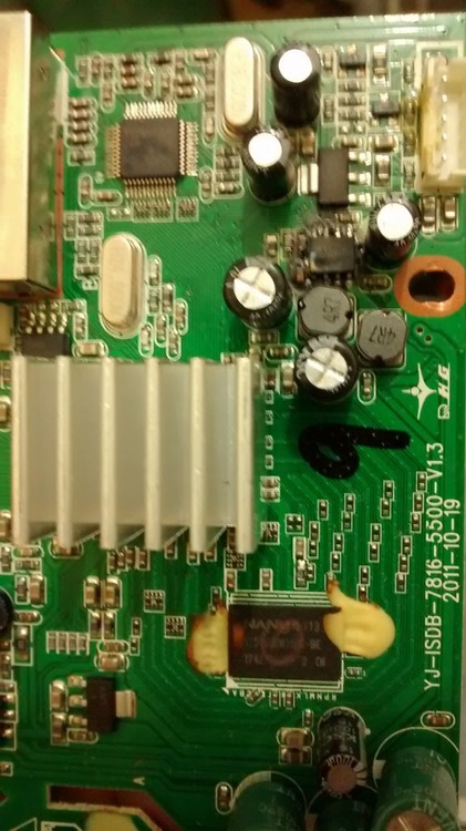 Este conversor digital aquário dtv-8000 não está ligando, e ao abrí-lo vi o motivo do defeito, tem um IC SMD queimado e não tem como identificá-lo, por isso conto com os amigos do fórum em me ajudar, vou postar fotos em anexo. E quem tiver o esquema elétrico possa me enviar o link para download. Desde já agradeço. EDITADO:Incluir prefixo -