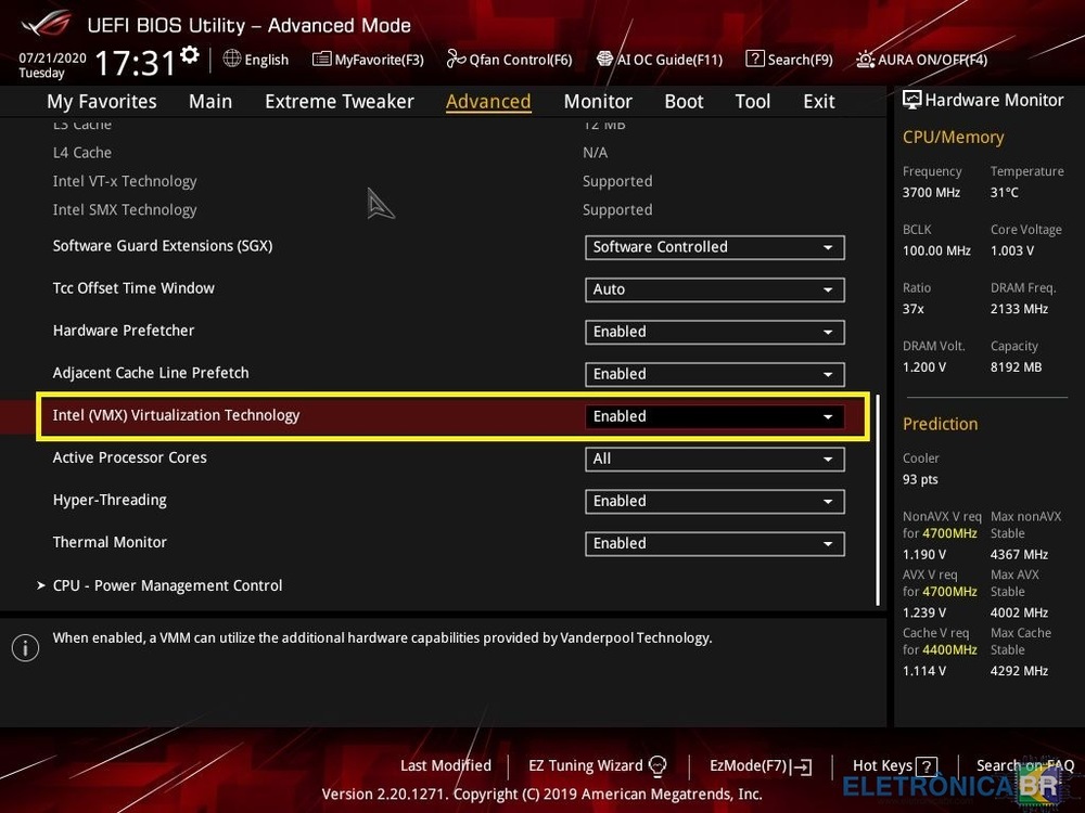 bios "Tecnologia de Virtualização Intel" como ativar ?