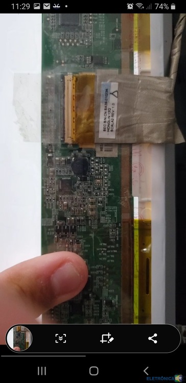 O notebook funciona, mas apresenta um zumbido na placa verde da tela. Ja trokei a tela e ja trokei o flat, peguei de um rv 415 q tava aki na sucata e pernanece o msm zumbido. Algs vezes ele fica com a tela piscando, enfraquecendo a luz e aumentando, msm após a troca do flat e da tela. Outras vezes funciona normal. Mas, o detalhe é q isso só acontece qnd estou usando ele na bateria. Qnd conectado a fonte, ele nao faz o zumbido na placa logica atras da tela e funciona perfeitamente. Inclusive, se ele estiver na bateria e apresentar o defeito, se eu conectar na fonte, ele para e fica bom na hr. Daí se eu tirar da fonte, ele volta a apresentar o defeito de piscar a tela e fazer o zumbido. No monitor externo tb funciona perfeitamente. Qnd ela reduz o brilho automatico antes de apagar a tela pra descanso, ao reduzir o brilho o barulho reduz tb. E qnd conecto o carregador, o barulho para. O zumbido parece ser de onde marquei na foto anexa. Eu aperto ali com o dedo e o barulho reduz. Mas nao creio ser a tela, pois como eu disse, ja trokei tela e flat e o problema permanece. Acho q eh alg coisa relacionada a troca da fonte pela bateria, pq qnd usa a bateria é q da o problema. Qnd ele se alimenta da fonte fica perfeito. -