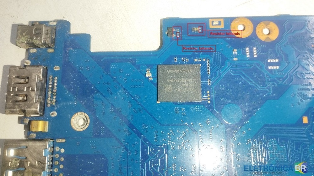 Olá a todos os amigos. Estou com essa placa em mãos, infelizmente ela não tem esquema elétrico nem boardview até este momento, sendo assim peço ajuda para identificar componente faltante e oxidado conforme circulado na foto abaixo: -