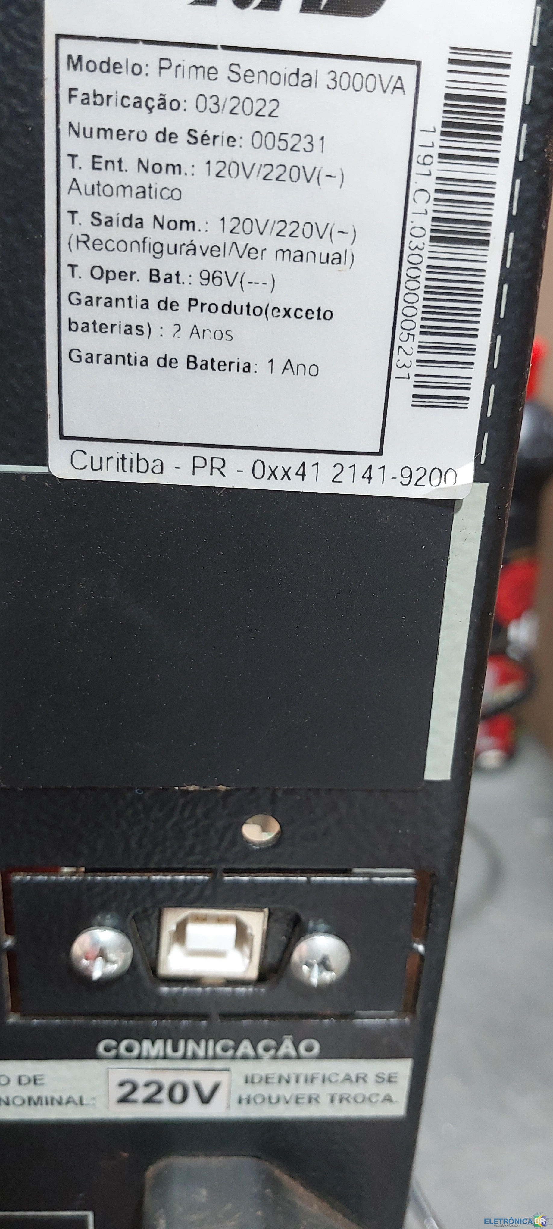 dúvida Nobreak NHS Prime Senoidal 3000Va Placa PRPWM 11-461310-07/14 Não Carrega baterias.