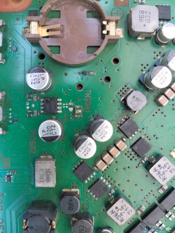 Olá!!, Boa tarde. bem gente recentimente eu comprei um playstation 3 com defeito, mais pra eu treinar no playstation. neste console paguei 50R$ pila, achei um preço muito interessante visto que ele veio com ate o HDD de 250gb funcionado. mas o defeito dele e o seguinte ele nao acende StandBy logo de cara, só após alguns segundos. com isso consigo ligar ele, mas nao sobre video e nem nada. no entanto o cooler dele gira e para após alguns segundos, nao fica muito tempo ligado, com isso eu peguei e abrir o console e fiz uma pequena analize na placa. pude observar que estavam faltanto alguns capacitores ceramicos perto do processador como pode ver a imagem abaixo, é bem na entrada de alimentação das portas USB, consequentimente esse console ja foi tentado algum reparo. Mas aparentemente o rapaz não sabia oque fazer e fez qualquer coisa. Com isso eu fiz algumas medições, na linha de 5v e na de 12v. é testei a fonte. a fonte deu tudo ok, mas na placa a tensão de 5v tava em torno de 3,6v é a de 12v algumas vezes dava infinidade e outras dava entorno de 7v. oque voçes acham que eu posso fazer?