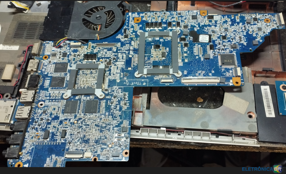 Ola! Estou com um notebook Hp Pavilion DV6 6047CL placa mãe HPMH 40 AB6200_D433 que não reconhece a GPU ATI! Esse notebook ele possui duas VGA uma ATI e outra Intel, quando o conector DC esta conectado na energia o video é gerado pelo chip ATI, quando ele esta ligado apenas na bateria o Chip Intel entra para gerar imagem e economizar energia. A questão é que o Notebook liga,funciona normal mas só reconhece apenas GPU da intel que é um HD 3000, mas a ATI não aparece de jeito nenhum, já tentei formatar, trocar de sistema operacional, drive do site da HP, drive no site da ATI, atulização da BIOS, reset da BIOS, Driver Booster. Instalei programa AID 64 e vi que apenas a HD3000 estava operacional e a ATI nem aparecia. Resolvi abrir o notebook na bancada e logo deparei com um capacitor de 4.7UF/25 que estava trincado na linha VGAcore, fiz a troca porem não resolveu o problema, pensei em regravar o bios, porem não tem esse arquivo em lugar nenhum. Estou desconfiado que pode ser o velho problema de solda do GPU ATI. Alguém tem alguma ideia? Obrigado