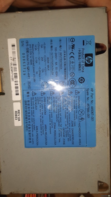 Ci de entrada estourou , sendo que ficou impossível de saber o chip ou equivalente. A fonte é uma hp PS-6361-4HF1. O chip é o ic600 responsável pela tensão de standby. 5v -