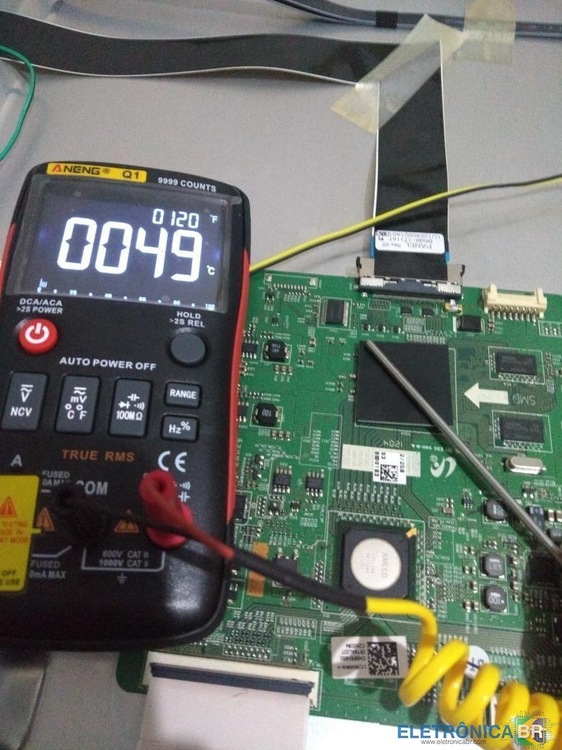 Olá pessoal. Sou iniciante na área da eletrônica e e gostaria de uma sujestão de reparo. Tenho uma tv Samsung de 55 polegadas Modelo UN55SE6500G. Ela começou aparecer 3 linhas verticais. Mas um dia destes ao ligar ela a imagem estava congelada ao fundo. Dependendo da imagem q está na tv quando ligada ela fica com uma cortina esbranquiçada como mostra nas fotos . Eu abri ela e fiz o teste removendo um dos cabos flats da T-com ligar e verificar alternando entre eles. Mas continuou com deficiência na imagem em ambos. Verifiquei o Drive do Display e não notei nenhum mau contato ao pressionar os flats. Mas notei q a placa T-com está fazendo um zumbido em alta frequencia como se fosse um assovio bem fininho e um super aquecimento de 50 graus no controlador q é de onde está zumbindo. Será q ela está com defeito na T-Con. Não encontrei nela os pontos de testes do VGL e VGH. Tem alguma sugestão de teste pra eu verificar se é T-Con, Display ou Placa de sinal? Quem puder me ajudar agradeço. Deus abençoe Segue as fotos.- 15 respostas