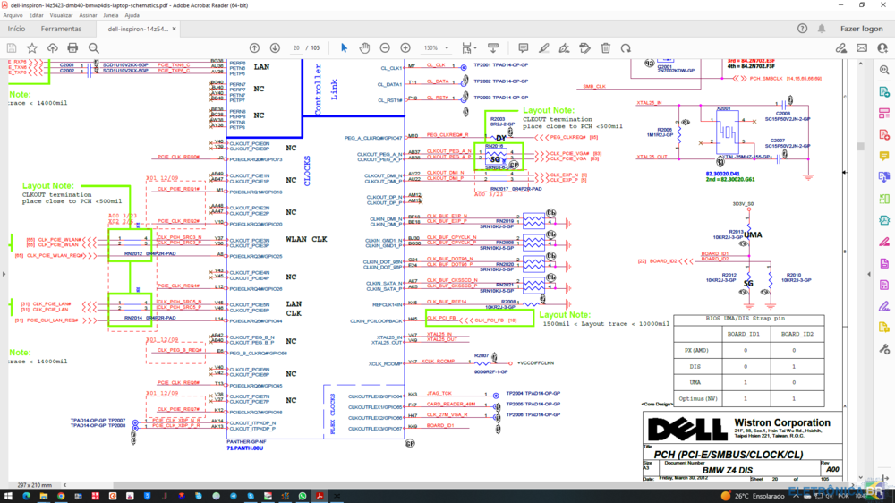 Bom dia pessoal, estou com esse notebook Dell 14Z 5423 - Placa DMB40 - 11289-1 que tem vídeo da AMD dedicado, já fiz os testes inclusive troquei a bios e permanece congelado na tela da Dell logo apos ligar. Seguindo o esquema eletrico, desabilitei a GPU AMD removendo a bobina PL9201, tambem adicionei o resistor R2013 de 10K, porém com esse resistor não da vídeo, sem o resistor da imagem porem fica com 6 bips. Alguém poderia me ajudar a solucionar? -