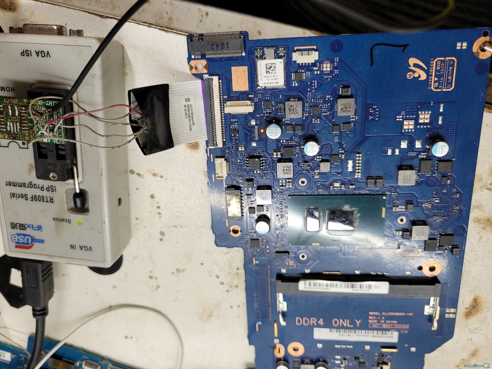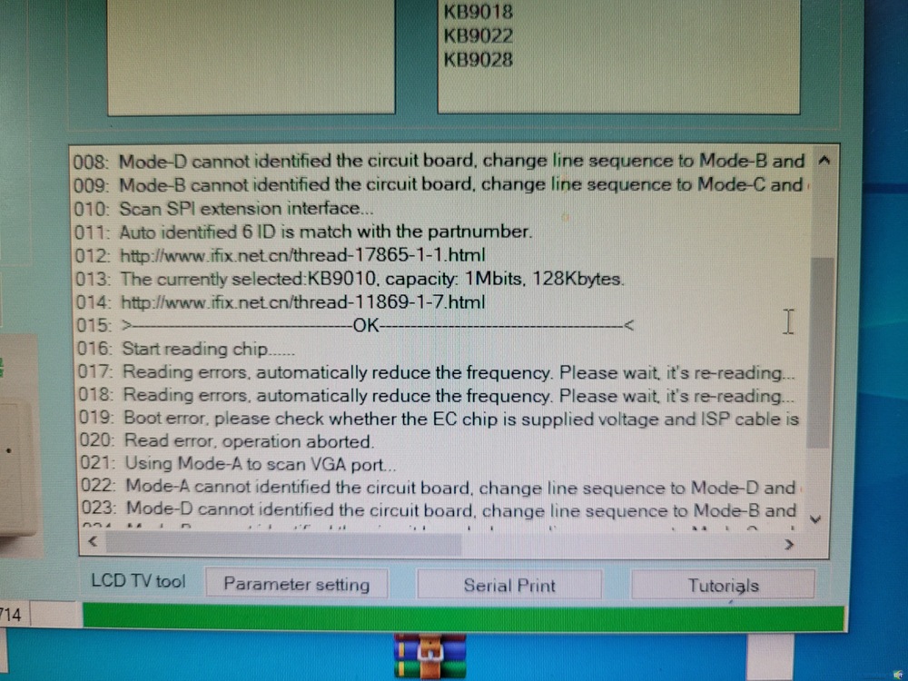 Prezados amigos do Eletrônicabr Estou com a referida placa na bancada que não liga nada. Tenho 19v no vin e 3.3v no io e o restante das tensões sobem depois do start estou tentando gravar o super io e não consigo ja tentei com 3 placas diferentes e elas retornan com o mesmo sintoma, uso a rt809f com os fios soldados num flat que vai no conector do teclado. vou anexar a foto do erro do programa. Preciso saber se alguem já passou por coisa parecida ou se a placa tem alguma proteção para não gravar ele soldado na placa. -