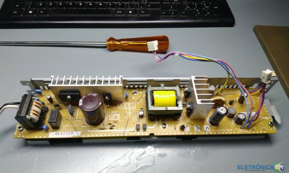 em análise HP LaserJet Pro Color CM1415fnw parou depois de surto de energia na rede, Não liga mais