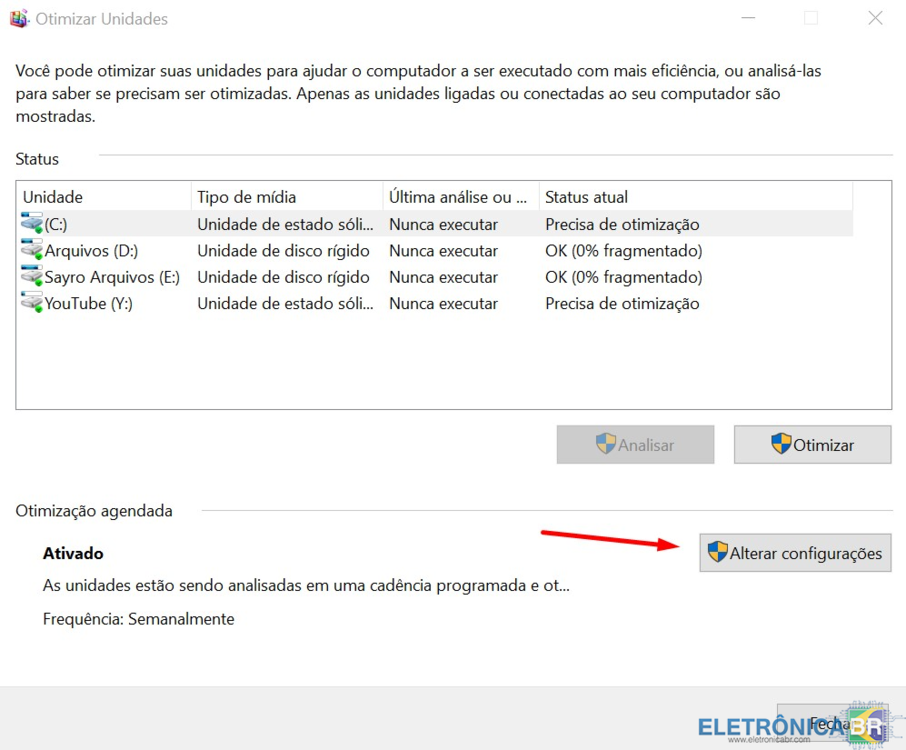 Desfragmentação De Disco Diária – Bug No Windows 10 A última atualização do Windows 10 (2004) está repleta de melhorias consideráveis, no entanto, os bugs persistem em assombrar muitos usuários. Recentemente o site WilderSecurity relatou um problema que muitos usuários tem enfrentado, o problema em questão tem relação direta com discos SSDs, o Windows está otimizando todos os dias esses discos, e isso pode não ser muito bom para o driver. Onde está o Bug? O que se ocorre é bastante simples (até a edição desse artigo a Microsoft ainda não corrigiu essa que pode ser uma falha) a manutenção automática do Windows faz todos os dias algumas checagens no sistema o que inclui otimizar ou desfragmentar unidades. O problema está relacionado aos discos SSD, quando a manutenção automática otimiza esses discos a próxima verificação não deveria otimiza-los novamente, o Windows não está fazendo o registro que informaria o próprio sistema que o disco em questão já foi otimizado no dia anterior. Veja na imagem abaixo que a otimização foi feita as 14:51 do dia 17-06-20. Já na imagem abaixo, menos de 24 horas depois o sistema de desfragmentação do Windows informa que o disco “precisa de otimização”. Más otimizar os discos SSDs não causa problema! Na verdade, isso é algo muito relativo, visto que Windows apenas otimiza o TRIM e não desfragmenta. No entanto, fazer isso constantemente não é bom para driver, assim esse bug do Windows pode fazer o disco perder aos poucos vida útil (o que não acontece da noite para o dia, talvez leve meses, anos etc). Otimização manual Primeiro vamos desabilitar a função da manutenção automática que otimiza os discos. Abra o menu do Windows e digite “Desfragmentar” clique para abrir o aplicativo nativo do sistema. Ao abrir o desfragmentador clique em “alterar configurações”. Agora clique “escolher”. Na tela exibida desmarque as unidades SSDs, clique ok. Pronto, com isso a manutenção do sistema não irá mais otimizar o TRIM desses discos. No entanto, é muito importante você otimiza-los a cada sete dias ou quinze dias. Veja nos passos abaixo! Usando programas Acima você conferiu como funciona a manutenção automática do Windows, o que inclui o desfragmentador nativo do sistema, talvez você até o use. No entanto, é possível ir além disso e realmente otimizar ou desfragmentar seus discos SSDs. Em nosso exemplo vamos usar o programa Defraggler da Piriform, baixe-o aqui. Ele é bem fácil de usar, veja na imagem abaixo depois de abrir o programa que se você selecionar o disco SSD e clicar em “Analisar” o programa irá mostrar uma porcentagem de arquivos Fragmentos no disco (guia Fragmentado). No exemplo abaixo apenas 8% dos arquivos estão Fragmentados, ou seja, apenas otimizar o TRIM desse disco é o suficiente. Em outro cenário se o disco após a analise informar uma alta taxa de arquivos Fragmentos, e você perceber que seu sistema anda lento ao copiar arquivos, iniciar o Windows etc. Você pode tentar apenas otimizar o TRIM, se mesmo assim a taxa de arquivos fragmentados continuar alta o melhor seja desfragmentar o disco por completo. Fica a pergunta posso realmente fazer isso? A resposta é sim, no entanto, nunca é recomendado, pois disco sólidos não precisam ser desfragmentados, apenas em casos raros como já mencionados no parágrafo acima, também o usuário não deve fazer dessa prática algo corriqueiro, se julgar necessário faça apenas uma vez, com intervalos bem grandes. Fonte: https://sayrodigital.com/hardware/desfragmentacao-de-disco-diaria-bug-no-windows-10/- 2 respostas