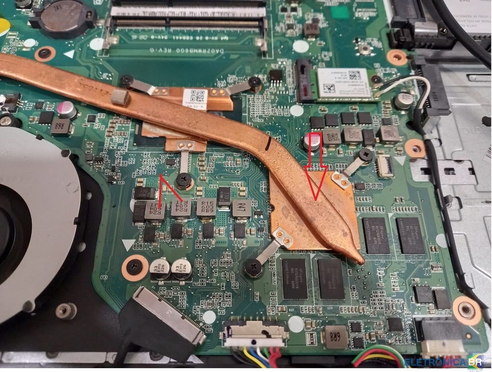 bom dia pessoal tudo joia! estou com esse notebook acer na bancada que não gera vídeo! liga tudo certinho mais não sobe o video.! regravei a bios com todos os arquivos aqui do forun mais nenhum a apresentou video, ja troquei o chip, por um novo mais não sobi video. a Placa Possui quase todas as tensões. exceto as marcadas na foto abaixo. detalhe o chip de video não aquece. o processador aquece normal. -