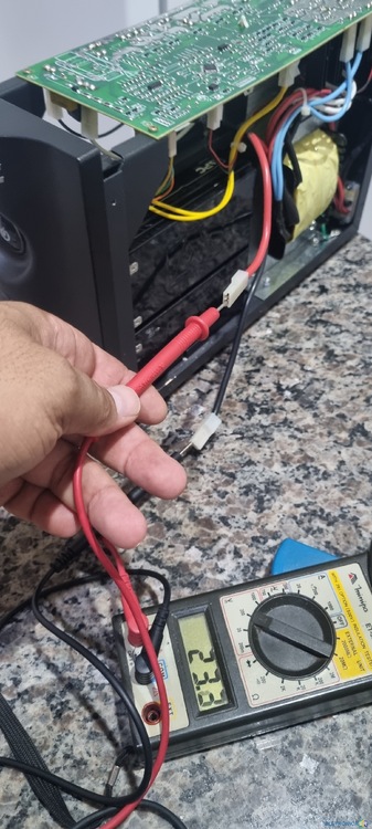 Boa, pessoal!!!! Ganhei um APC backups BZ1500XLBI BR com defeito. Eu peguei justamente por gostar de aprender e tbm do desafio de conseguir arrumar. Não saía tensão nas tomadas mesmo estando em rede e dava 10 bipes. Ao abrir, vi que uma bateria estava vazando e para tirá-la tive que desconectar os cabos. Partindo daí já dá pra saber oque aconteceu, né? Kkk. Quando conectei novamente, a tensão de alimentação da bateria que estava em 23.3V foi pra 10V. Se tiverem fotos da ligação dos cabos e/ou o esquema elétrico, iriam me ajudar muito. Desde já agradeço