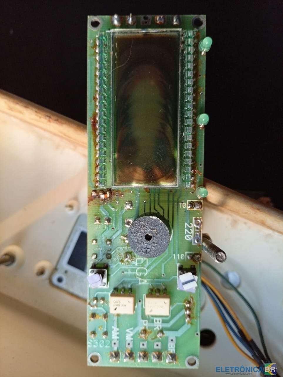 Pessoal, está com esse fio azul solto (foto) já procurei vestígios dos pedaços que sempre ficam soldados e não achei nada. Os outros fios estão no conector (foto) que é ligado no processador. Esse processador não tem código marcado nele. senão eu tinha procurado no datasheet. Esse Liquid é fabricado ou montado pela MK-Eletrodomenticos Se alguem puder ajudar ou se tiver o esquema dessa placa, agradeço. abs:-