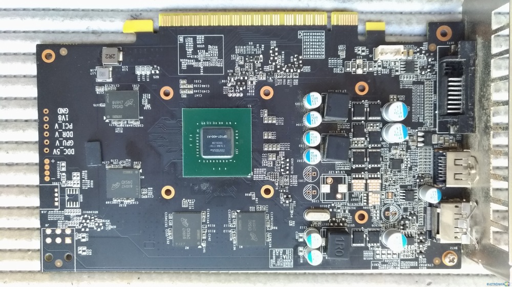 Olá, vamos a maior questão da humanidade, placa de vídeo que não dá vídeo. Como diz no título é uma GTX 1070 Mini da Galax, não sei o que aconteceu com a placa pois comprei ela assim para tentar o reparo. Fiz os testes e não se encontra em curto nas linhas de 12v e 3v. Plugando-a no computador os coolers giram um pouco e param e a placa mãe acusa que está sem placa de vídeo. Tirei a placa, desmontei e fazendo uma análise visual não parece ter nada errado. Coloquei a placa no riser para pegar as tensões e a placa tem todas. DDR_V - 1,41v 1V8 - 1,84v GPU_V - 0,84v 5V - 5,05v PCI_V - 1,01v A PCB da Galaxy tem os locais para medições, mas medindo nas bobinas tem as mesmas tensões. Ligando a placa como secundária ela não é reconhecida no sistema. Ela esquenta quando ligada. Até agora foi isso que foi feito, não sei por onde continuar. Obrigado desde já! -